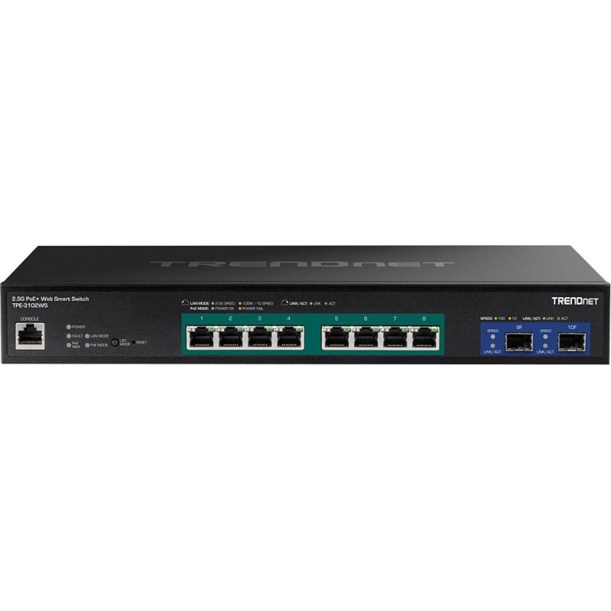 TRENDnet 10-Port Multi-Gig Web Smart Switch, TEG-3102WS, 8 x 2.5GBASE-T Ports, 2 x 10G SFP+ Slots, Ethernet Splitter, Metal Housing, NDAA & TAA Compliant, Lifetime Protection, Black